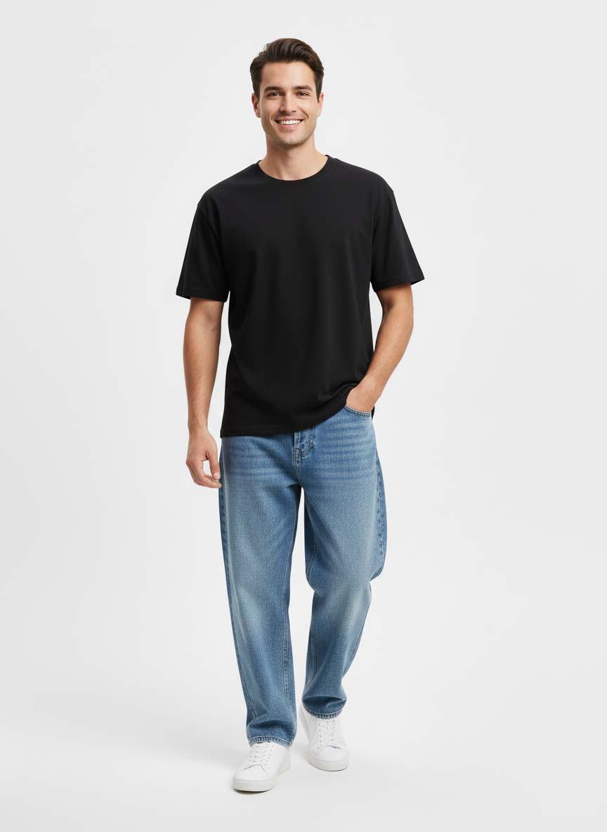 Caparison’s Basic Black Tee Shirt is the ultimate wardrobe staple, combining minimal style with all-day comfort. Crafted from soft, breathable cotton, this tee offers a regular fit with a clean silhouette that pairs effortlessly with anything in your closet. Whether worn solo or layered under jackets and shirts, it’s a timeless essential designed for versatility.