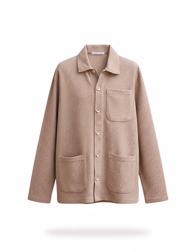 Jacquard Button Down Shacket – Beige, Textured Layering with Effortless Versatility