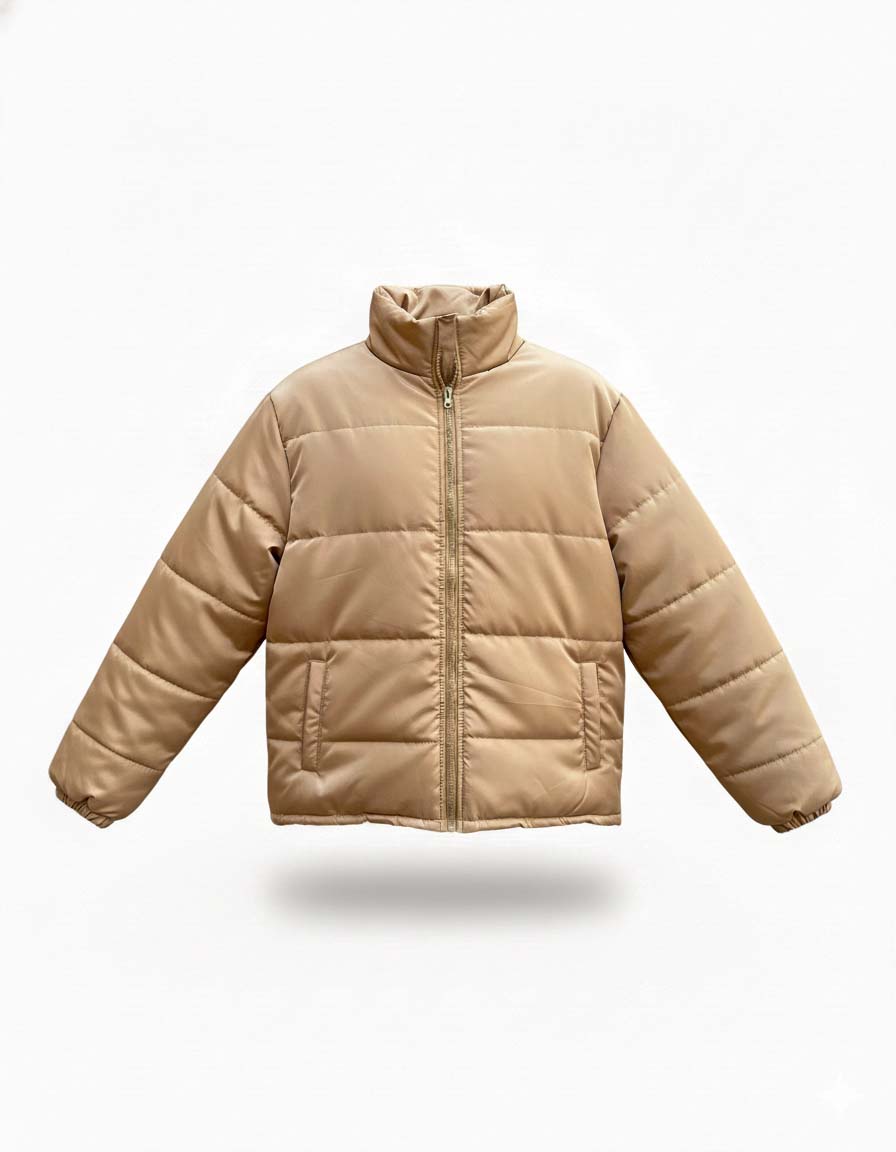 Pair the Beige Puffer Jacket with white tees, charcoal chinos, or light-wash denim for a clean winter aesthetic. Add sneakers or boots for a polished look perfect for outings, travel, or everyday wear.