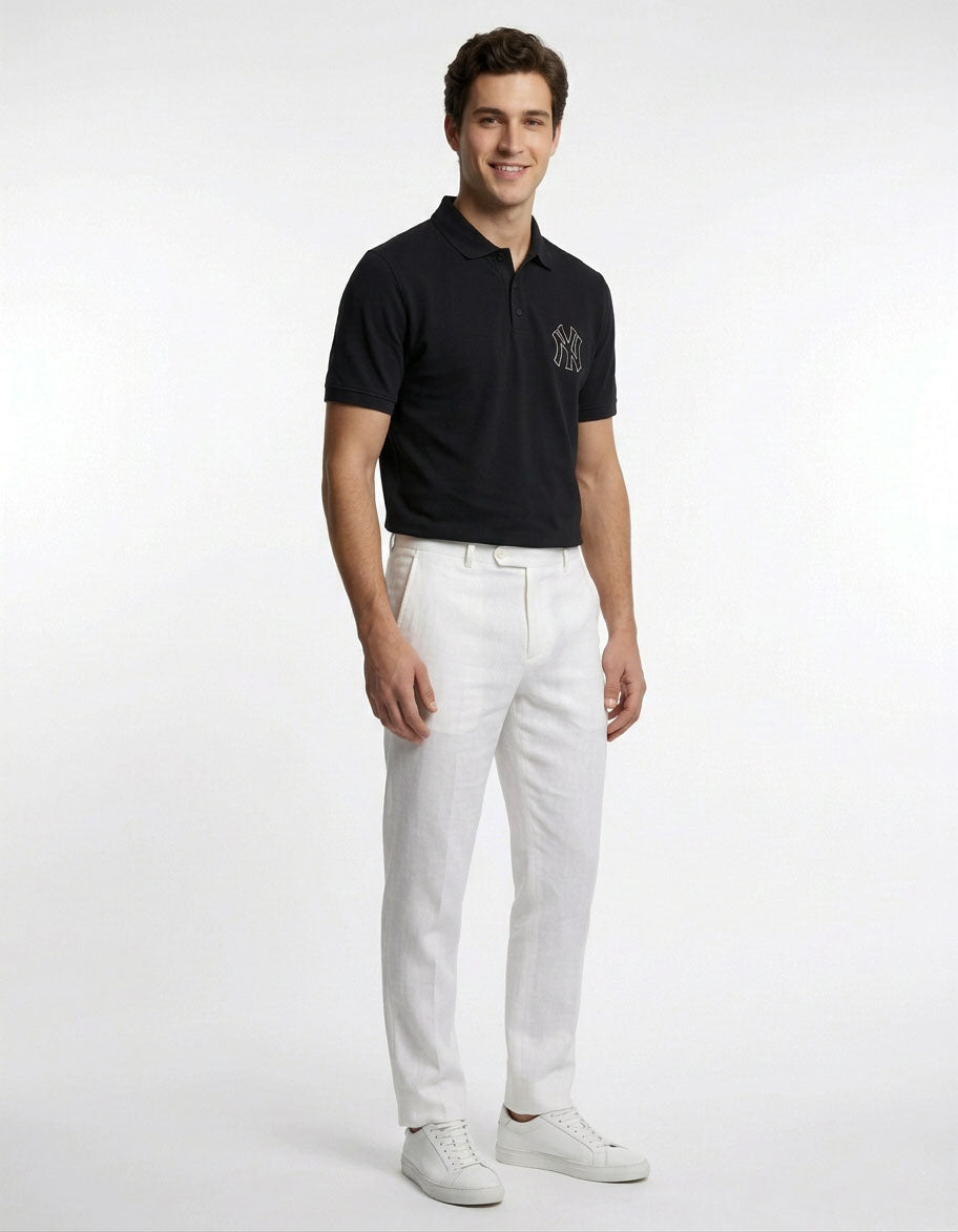 The deep black base combined with the NY embroidered detail adds a refined touch of character while maintaining a minimalist and versatile aesthetic. Designed with a structured polo collar and comfortable fit, this piece transitions effortlessly from casual outings to smart everyday wear.