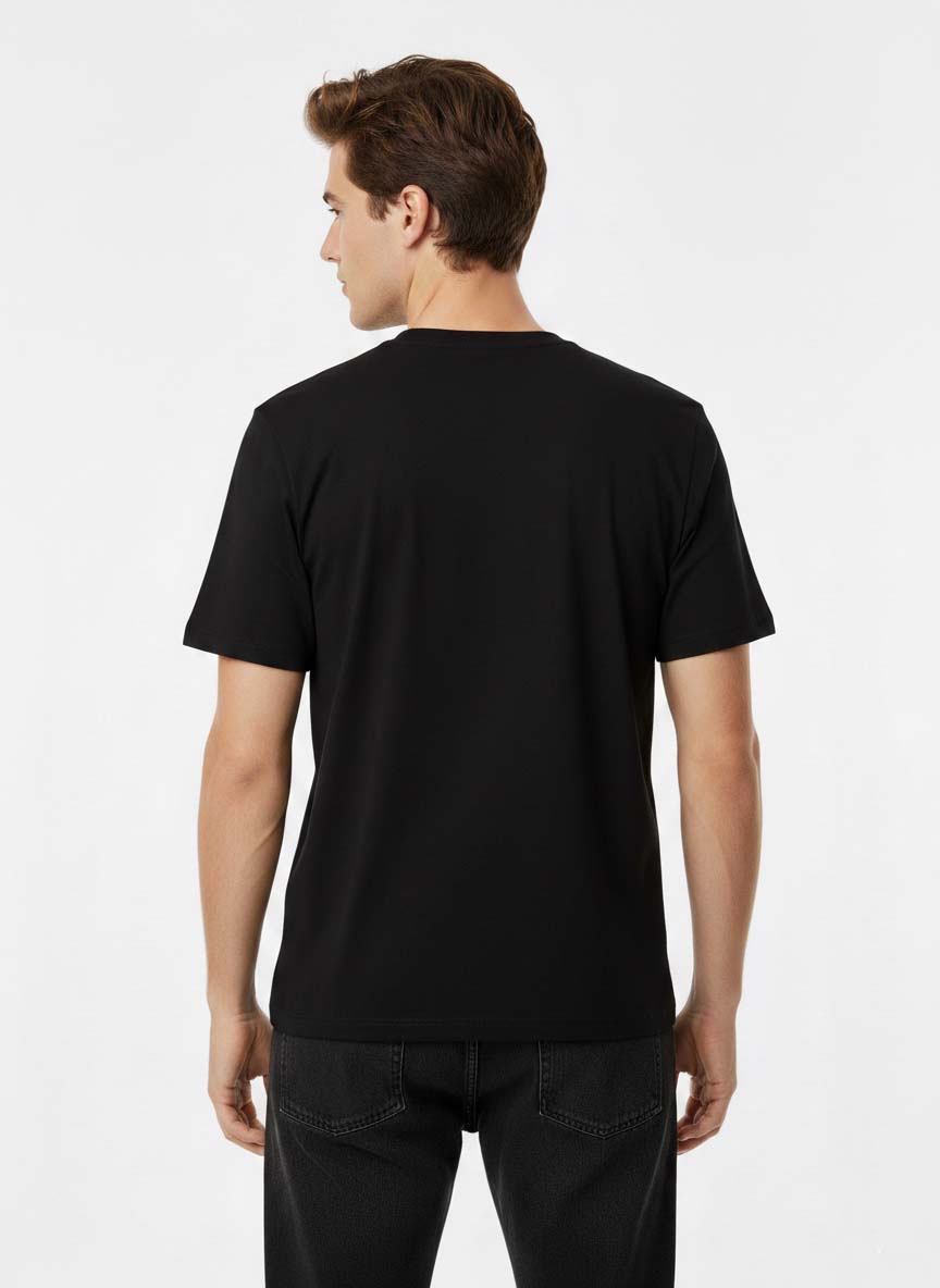 The deep black color adds a sharp, versatile base that pairs effortlessly with jeans, chinos, or layered jackets. With a structured regular fit, this graphic tee combines modern style with dependable comfort for everyday use.