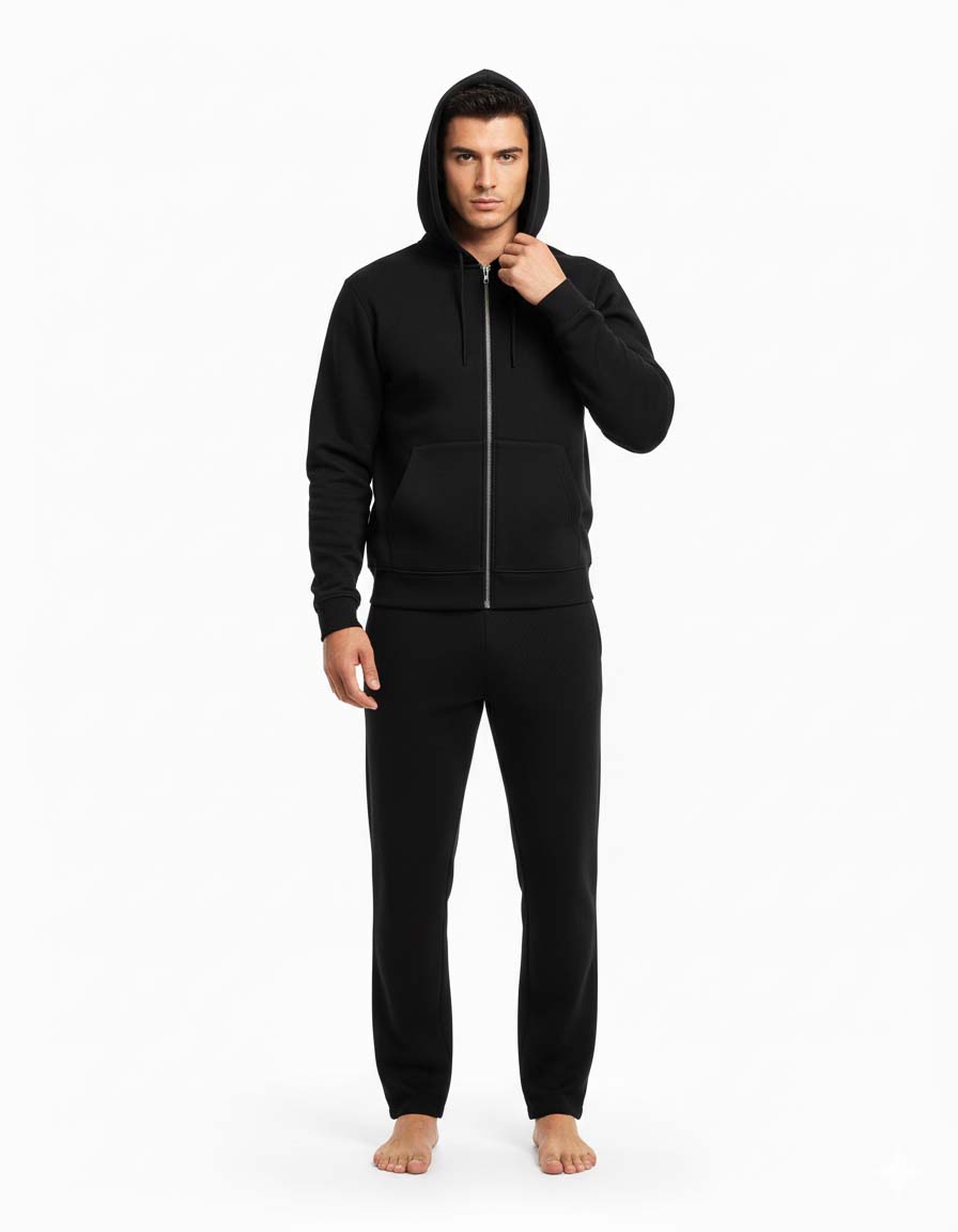 Elevate your everyday style with Caparison’s Black Zipper Hoodie — a versatile wardrobe staple crafted for modern comfort and clean minimal appeal. Designed in a premium cotton blend, it offers a soft, warm, and breathable feel that keeps you comfortable throughout the day. The sleek black shade makes it effortlessly pairable with any outfit, whether you’re dressing for casual days, travel, or relaxed evenings. With a smooth front zipper, adjustable drawstrings, and ribbed edges, this hoodie blends practicality with a refined contemporary look.