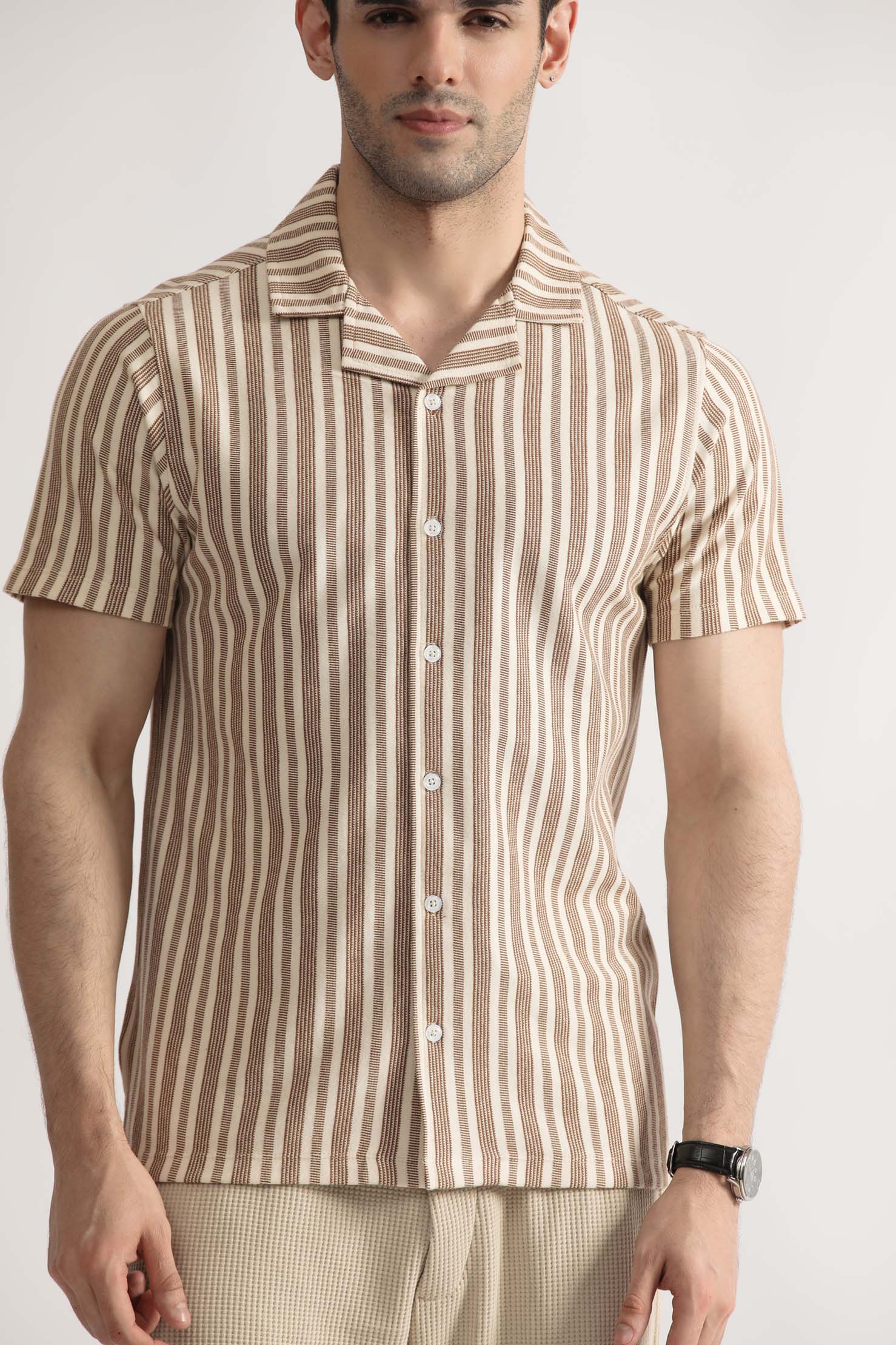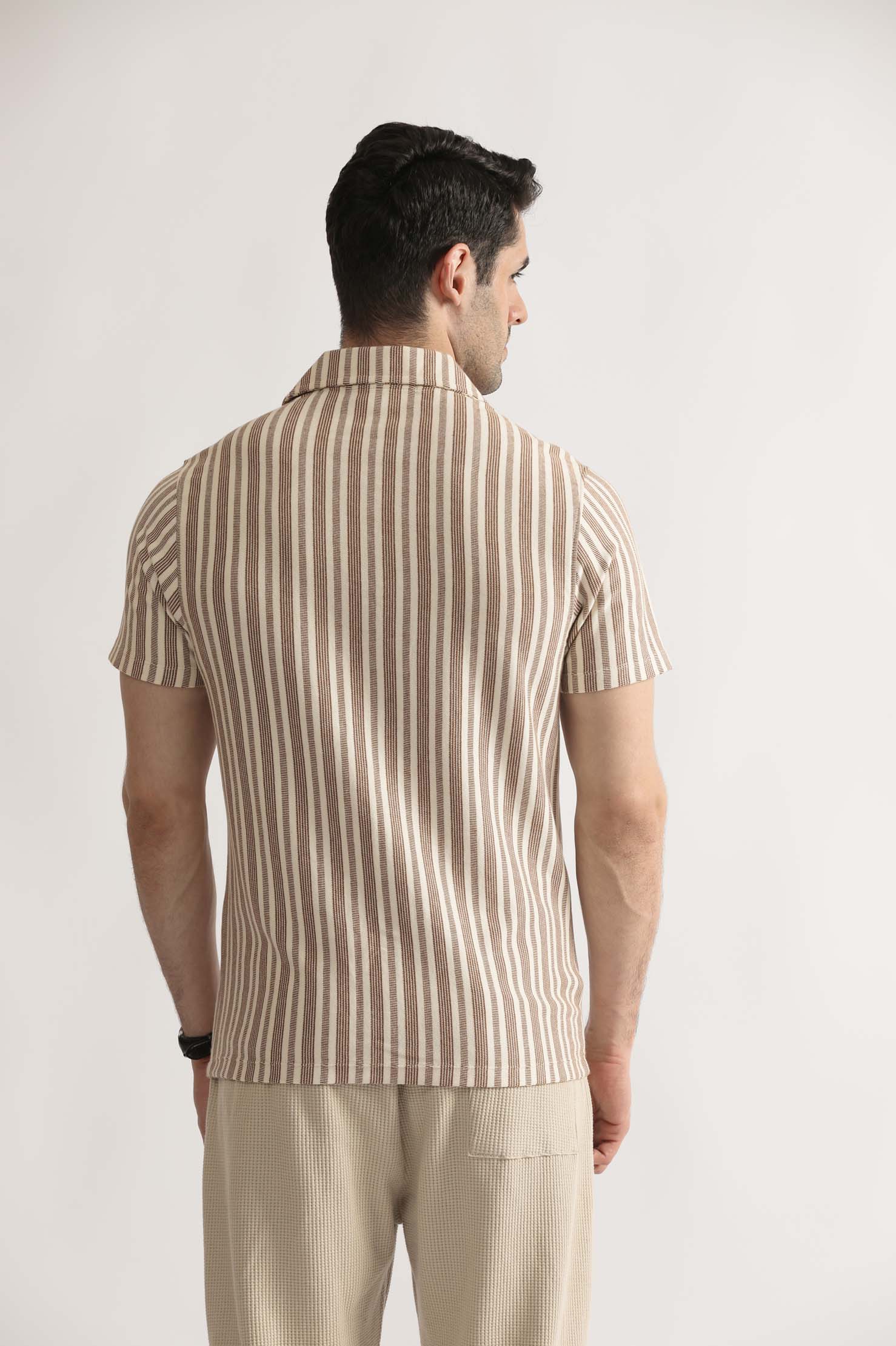 Elevate your off-duty wardrobe with the Coat Collar Knit Shirt in Brown, crafted from a breathable cotton blend for ultimate comfort and soft hand feel. Designed with a structured coat-style collar and subtle knit texture, this shirt effortlessly blends sophistication with laid-back charm. Ideal for cooler evenings or transitional weather, it offers versatility for both casual and smart-casual looks.