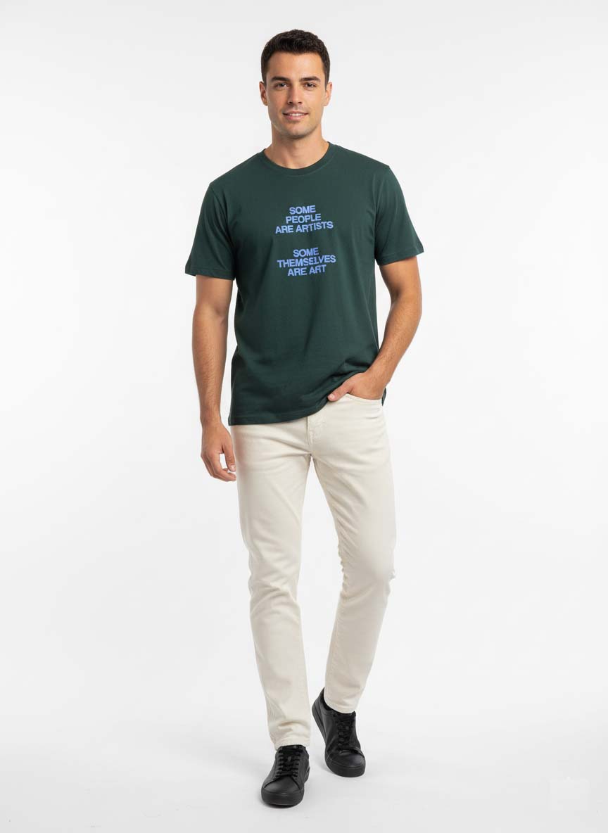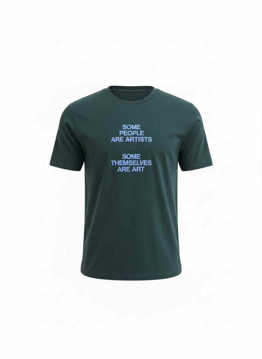 Caparison’s Olive Green Graphic Tee Shirt blends expressive style with everyday comfort. Crafted from 100% cotton, this tee features a bold statement graphic that reads “Some people are the artist, some themselves are art,” reflecting individuality and confidence. The soft olive tone complements its minimalist aesthetic, making it a versatile piece for effortless streetwear styling.
