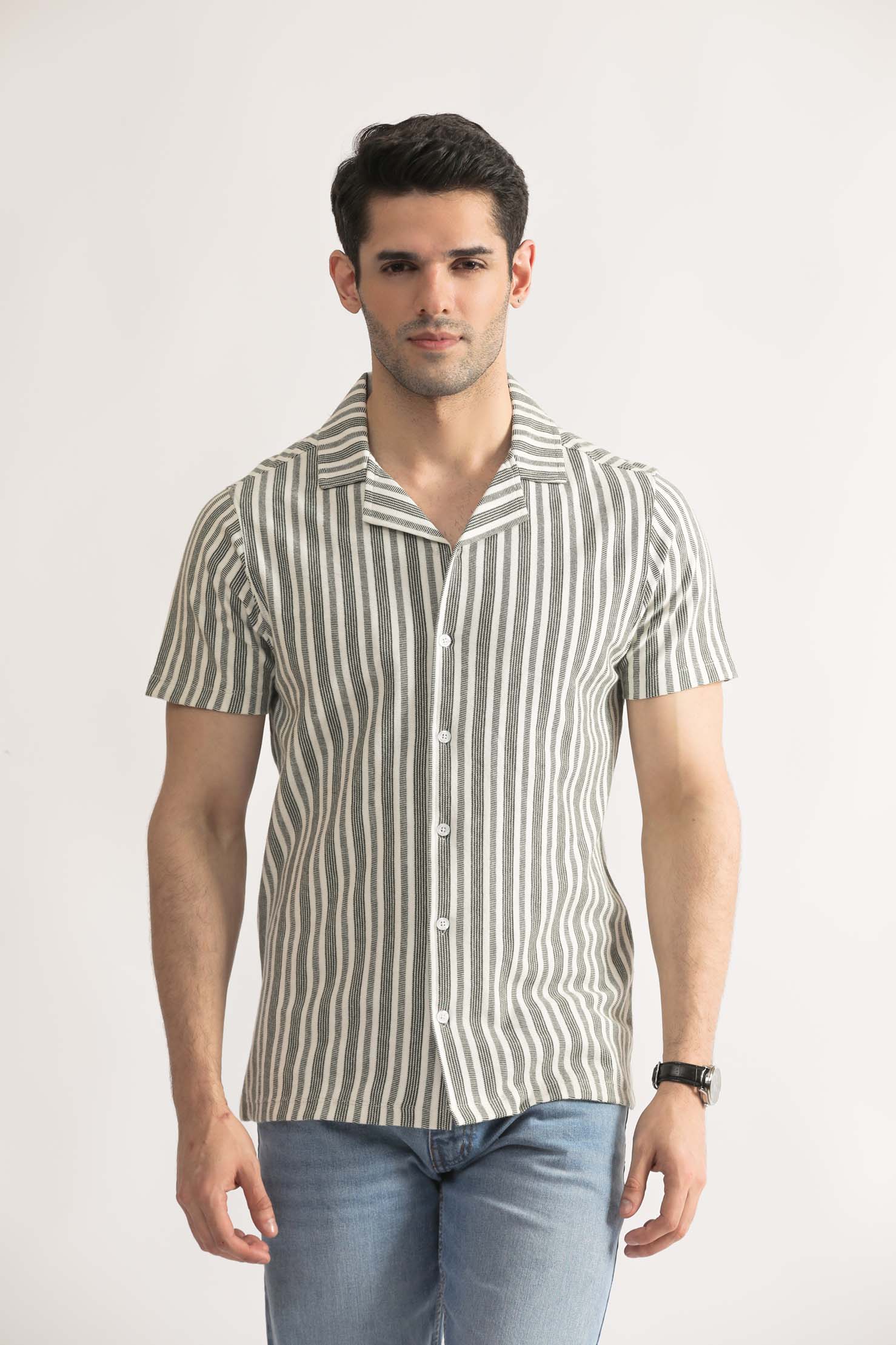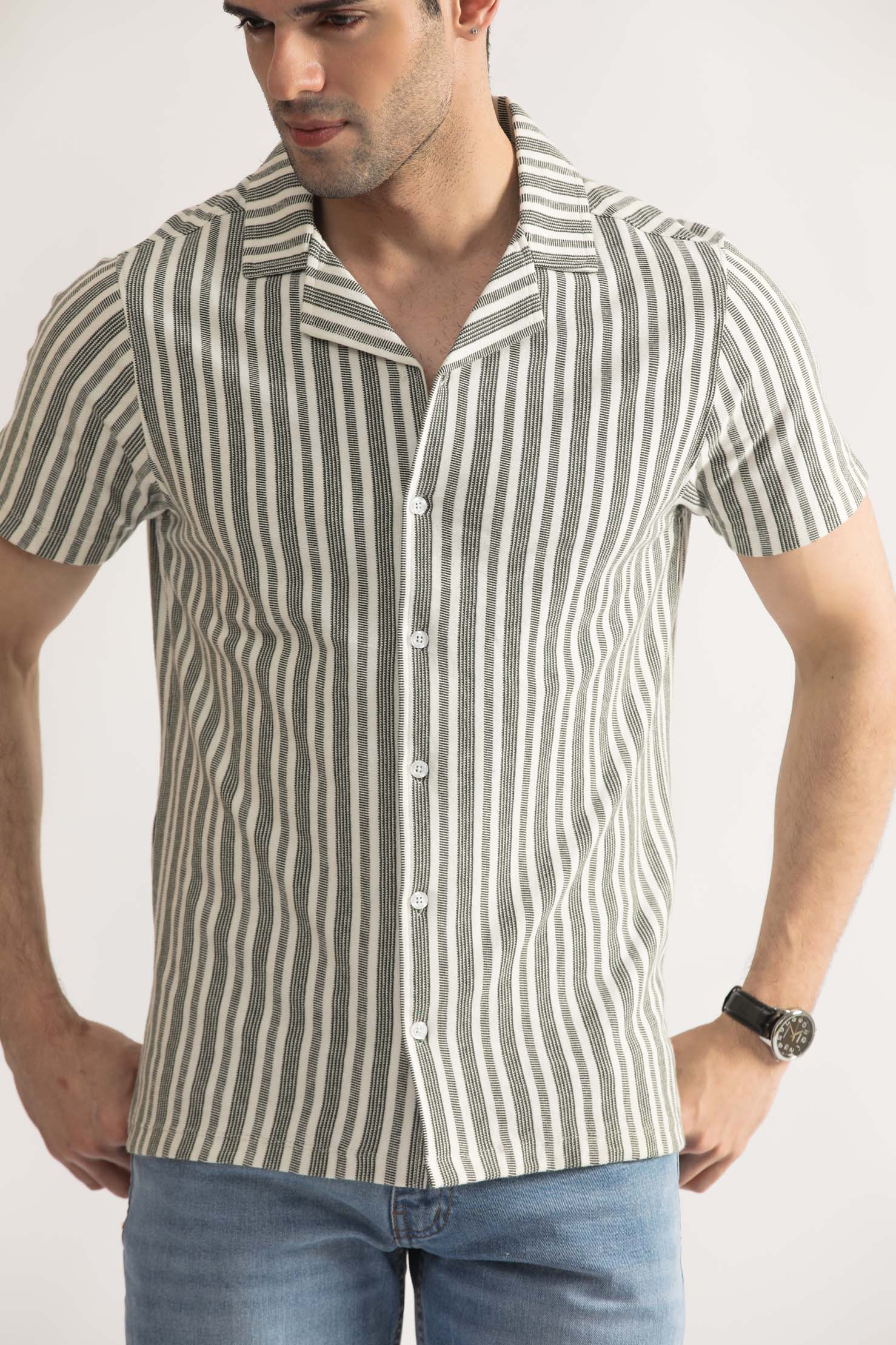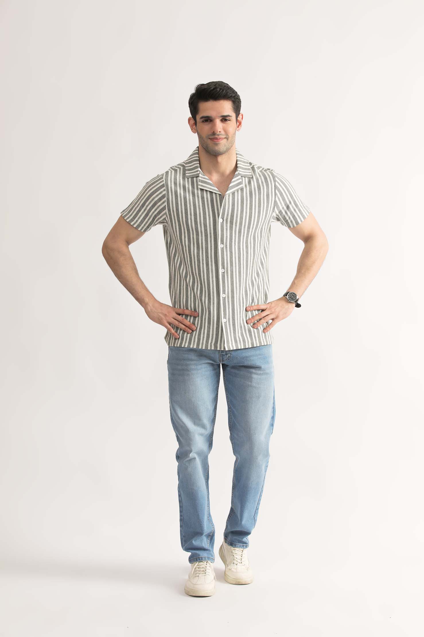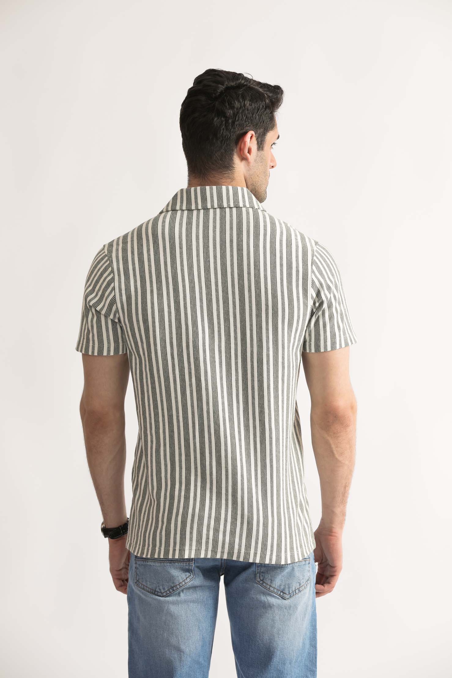 Layer it over a neutral tee with chinos for effortless sophistication, or wear it buttoned-up with jeans for a clean, refined look. The Coat Collar Knit Shirt in Green adds understated elegance to any modern wardrobe.