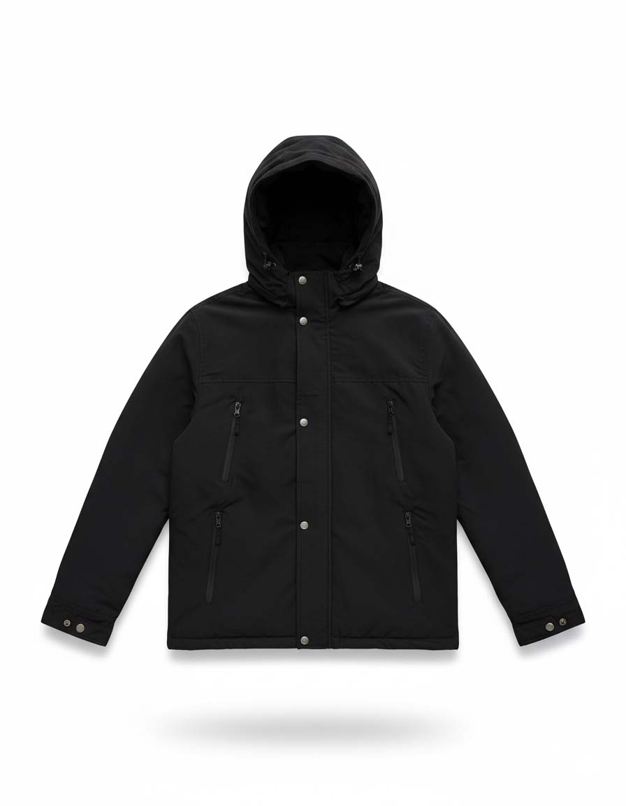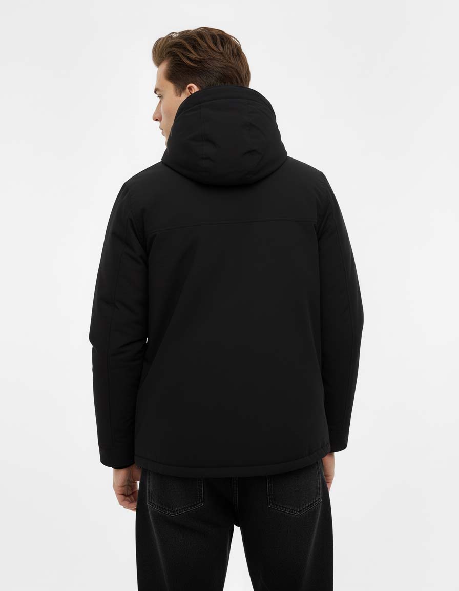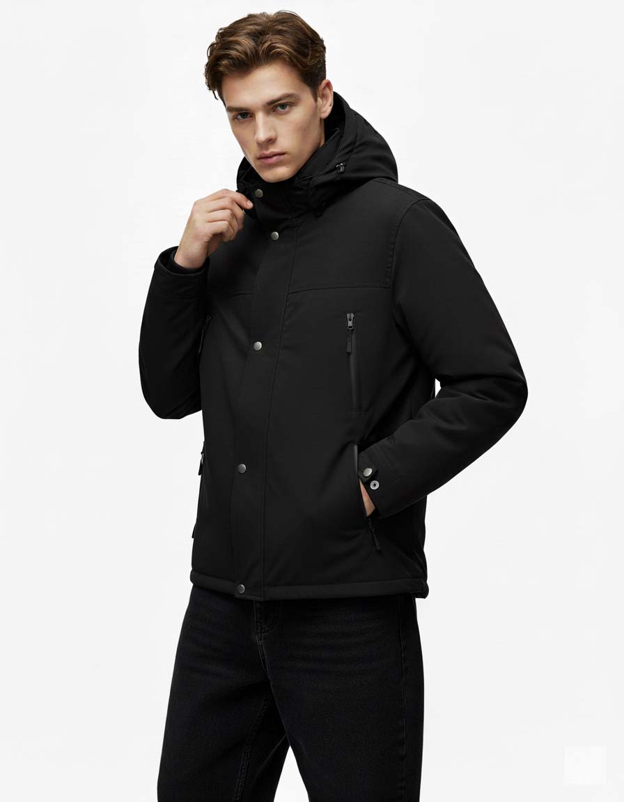 Pair this Black Hooded Jacket with slim-fit denim, joggers, or neutral chinos for a versatile winter look. Layer over a crew-neck sweater, hoodie, or turtleneck for added warmth. Complete the outfit with sneakers or boots for city outings or casual weekends.
