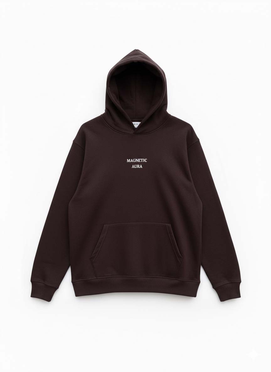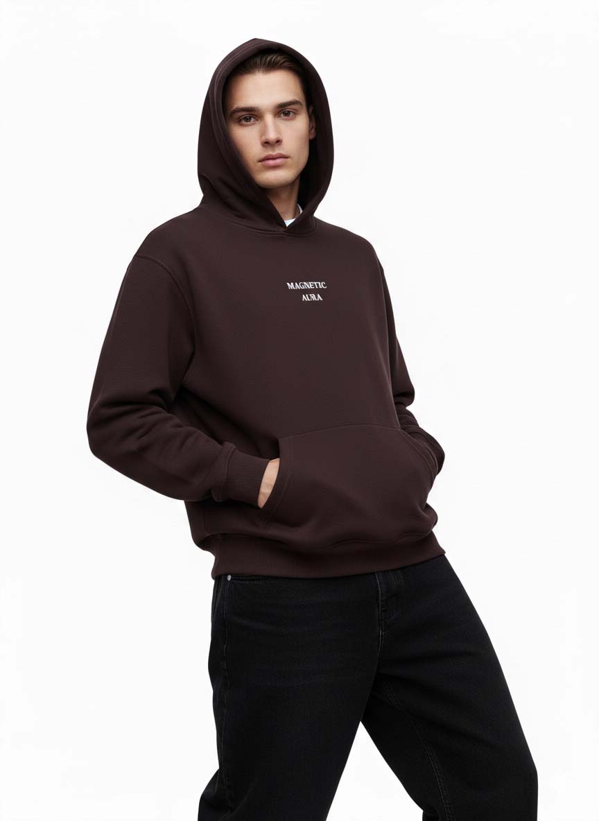 Style the Maroon Graphic Hoodie with black or dark-blue denim, cargo trousers, or knit joggers for a balanced casual look. Finish with white or neutral sneakers to let the “Magnetic Aura” graphic stand out while keeping the outfit clean and modern.