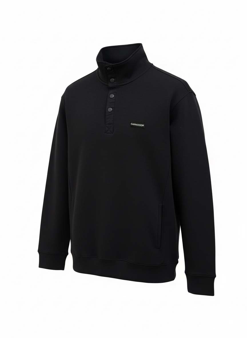 Refine your winter essentials with Caparison’s Mock Neck Sweatshirt in Black — a modern classic designed for clean styling and everyday comfort. Crafted from fine cotton fabric, this sweatshirt offers a smooth, soft hand feel with breathable warmth, making it ideal for seasonal wear. The structured mock neckline adds a polished edge while maintaining a relaxed, contemporary silhouette.