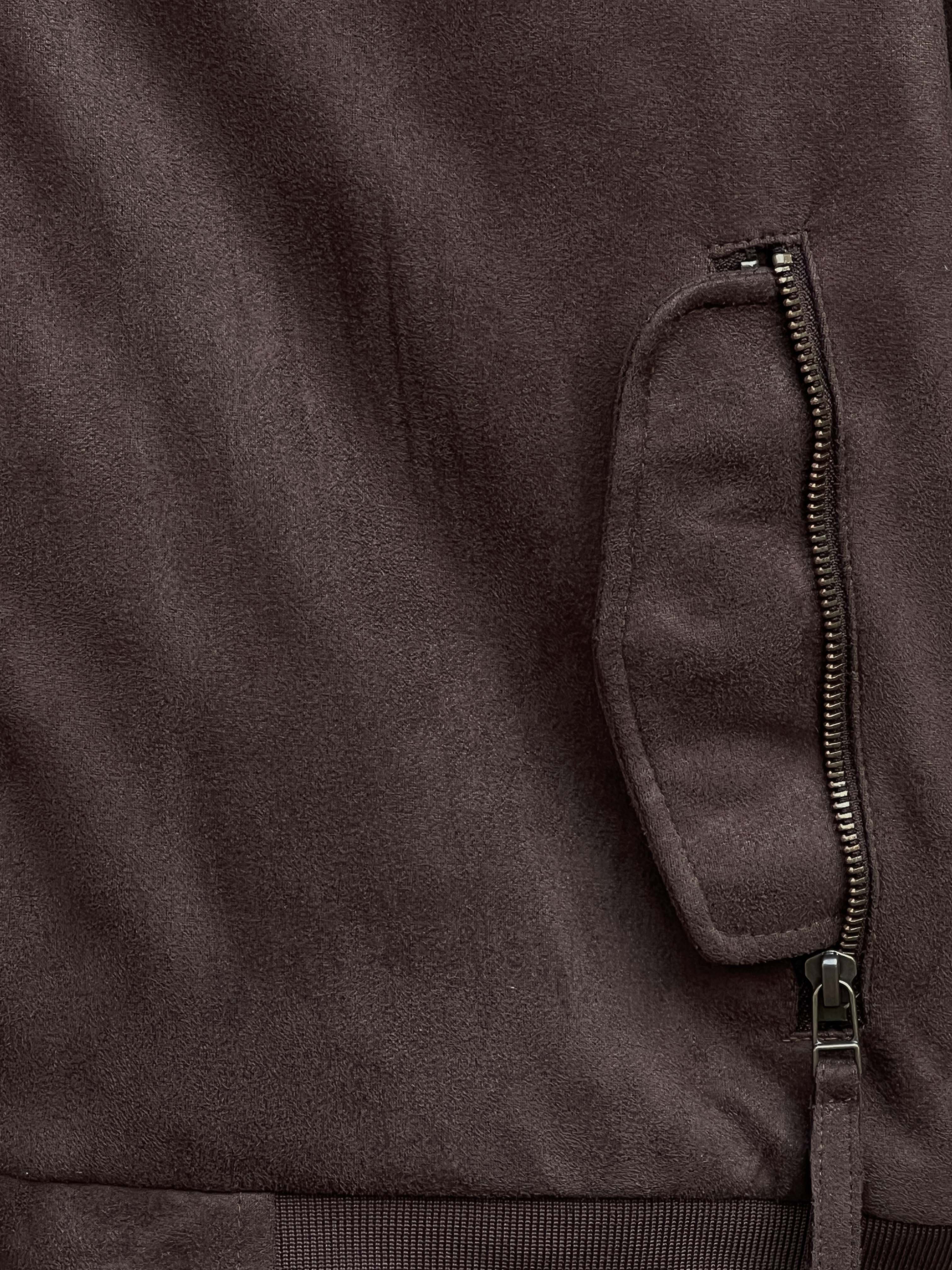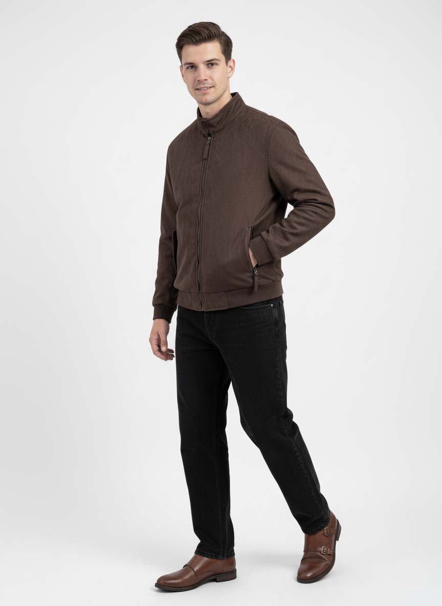 Pair the Brown Mock Neck Suede Jacket with black or dark-brown trousers, slim-fit denim, or neutral chinos for a balanced and elevated winter look. A solid knit or turtleneck underneath enhances warmth while keeping the outfit refined. Finish with boots or clean sneakers for effortless sophistication.
