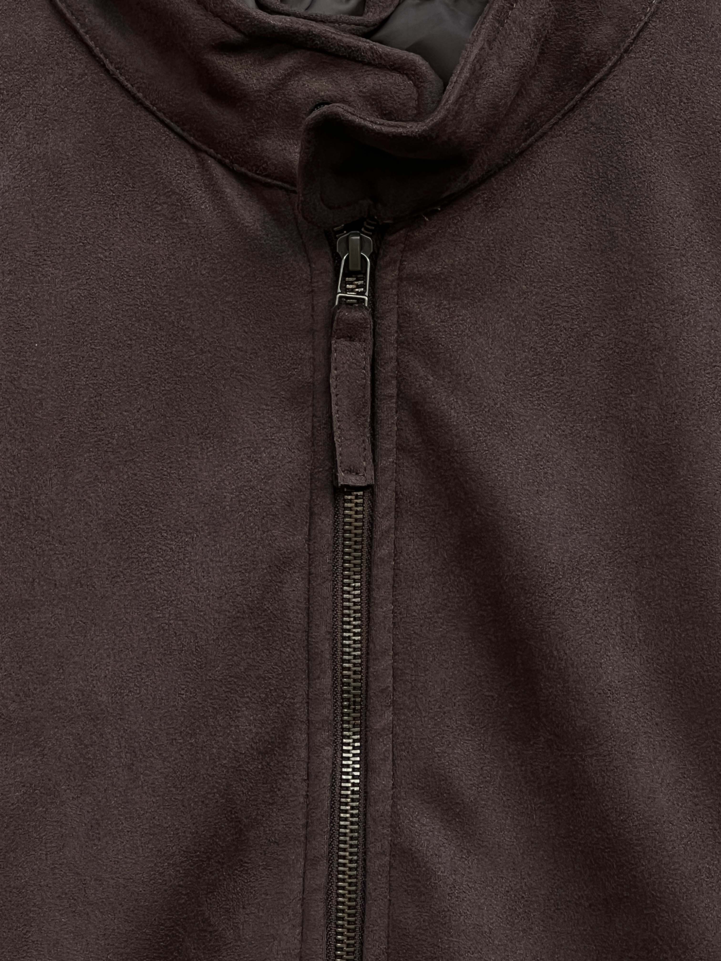 Make a confident seasonal statement with Caparison’s Mock Neck Suede Jacket in Brown — a refined winter essential crafted from premium suede fabric that delivers a soft, velvety texture with elevated warmth and structure.