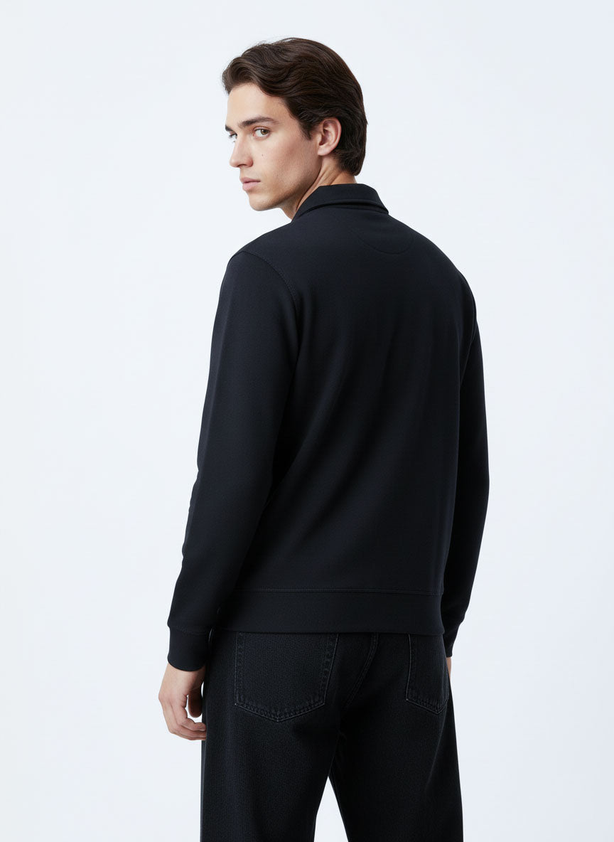 Style the Navy Zip Collar Sweatshirt with black or charcoal denim for a sharp winter look. Layer it under a puffer or bomber jacket for added warmth, and finish with sneakers or casual boots for a clean, urban aesthetic.