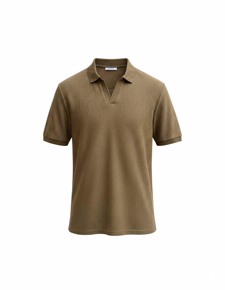 Add effortless texture to your everyday style with Caparison’s Olive Green Jacquard V-Neck Polo Shirt. Crafted from 100% cotton with fine jacquard knit detailing, this shirt features a modern V-neckline and structured fit for all-day ease. The olive tone adds a subtle earthy boldness  ideal for both relaxed and elevated looks.