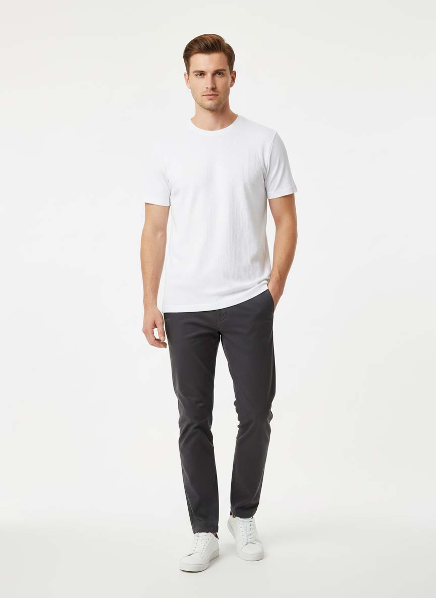 Step up your basics with Caparison's White Jacquard Pattern Tee Shirt - where texture meets comfort. Woven with a raised jacquard knit, this 100% cotton tee delivers depth and dimension without compromising breathability. Its clean white tone offers versatile styling from day to night, making it a standout addition to your casual wardrobe.