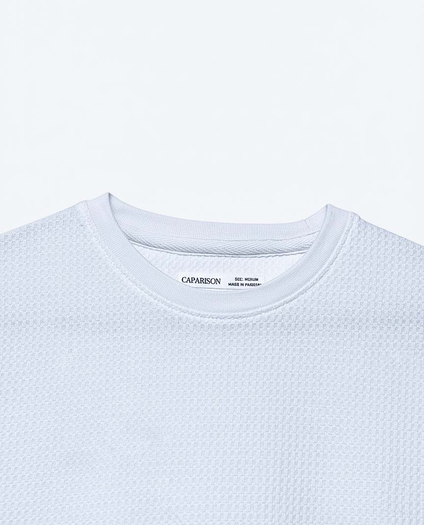 Step up your basics with Caparison’s White Jacquard Pattern Tee Shirt  where texture meets comfort. Woven with a raised jacquard knit, this 100% cotton tee delivers depth and dimension without compromising breathability. Its clean white tone offers versatile styling from day to night, making it a standout addition to your casual wardrobe.