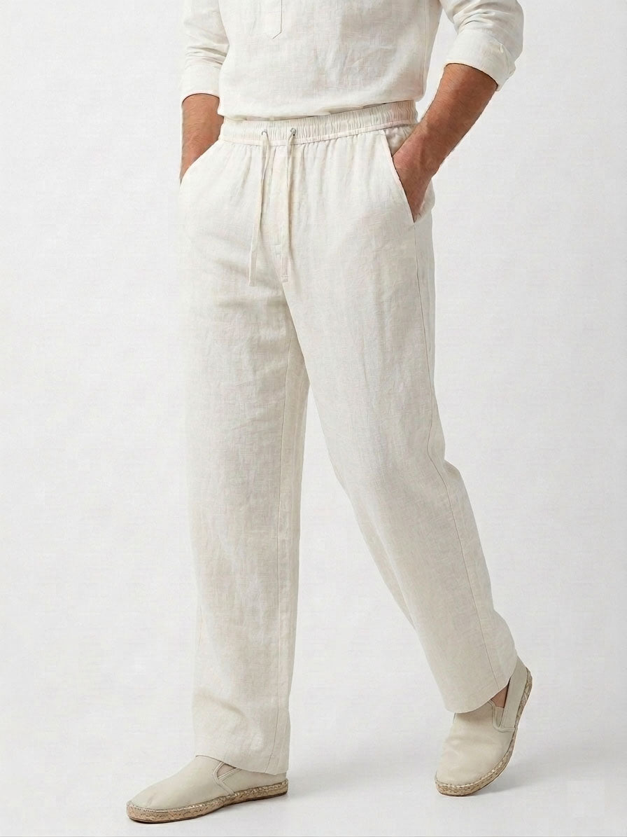 Pair these White Linen Straight Trousers with a linen kurta shirt or a casual cotton tee for a relaxed summer look. Add loafers or sandals to complete a clean, effortless outfit suitable for both daytime and evening wear.