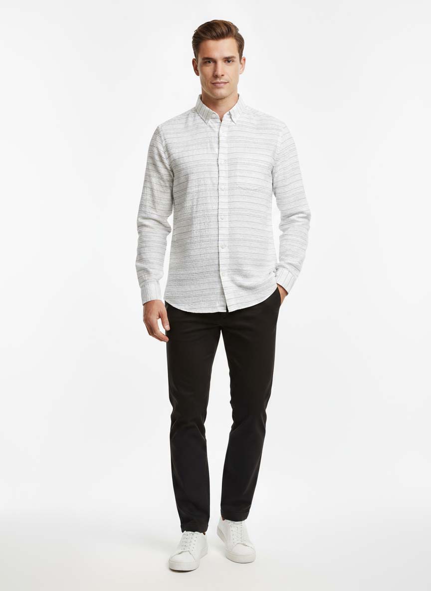 Elevate your everyday look with Caparison’s White Self Line Casual Shirt  a refined essential with subtle texture and a modern fit. Crafted from breathable cotton and featuring a self-striped weave, this shirt blends timeless minimalism with visual depth. Perfect for summer days, semi-formal events, or smart layering.