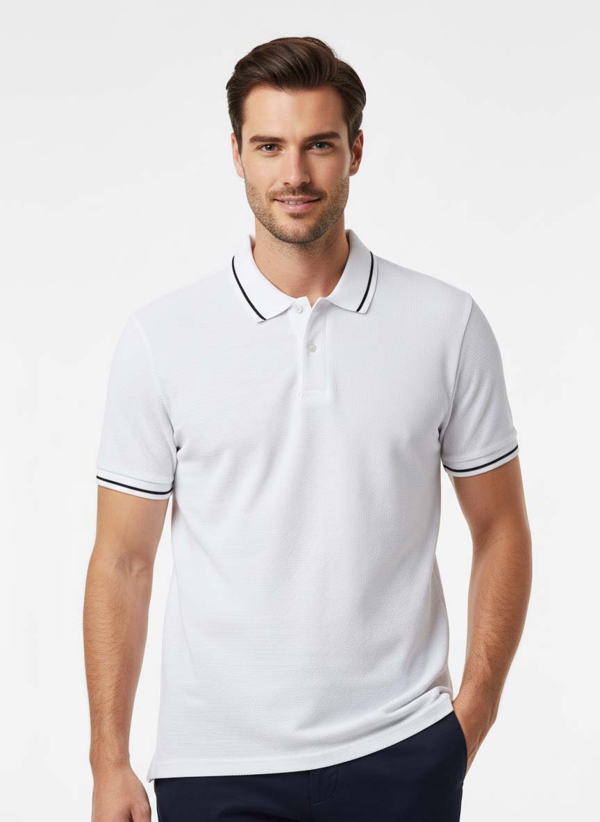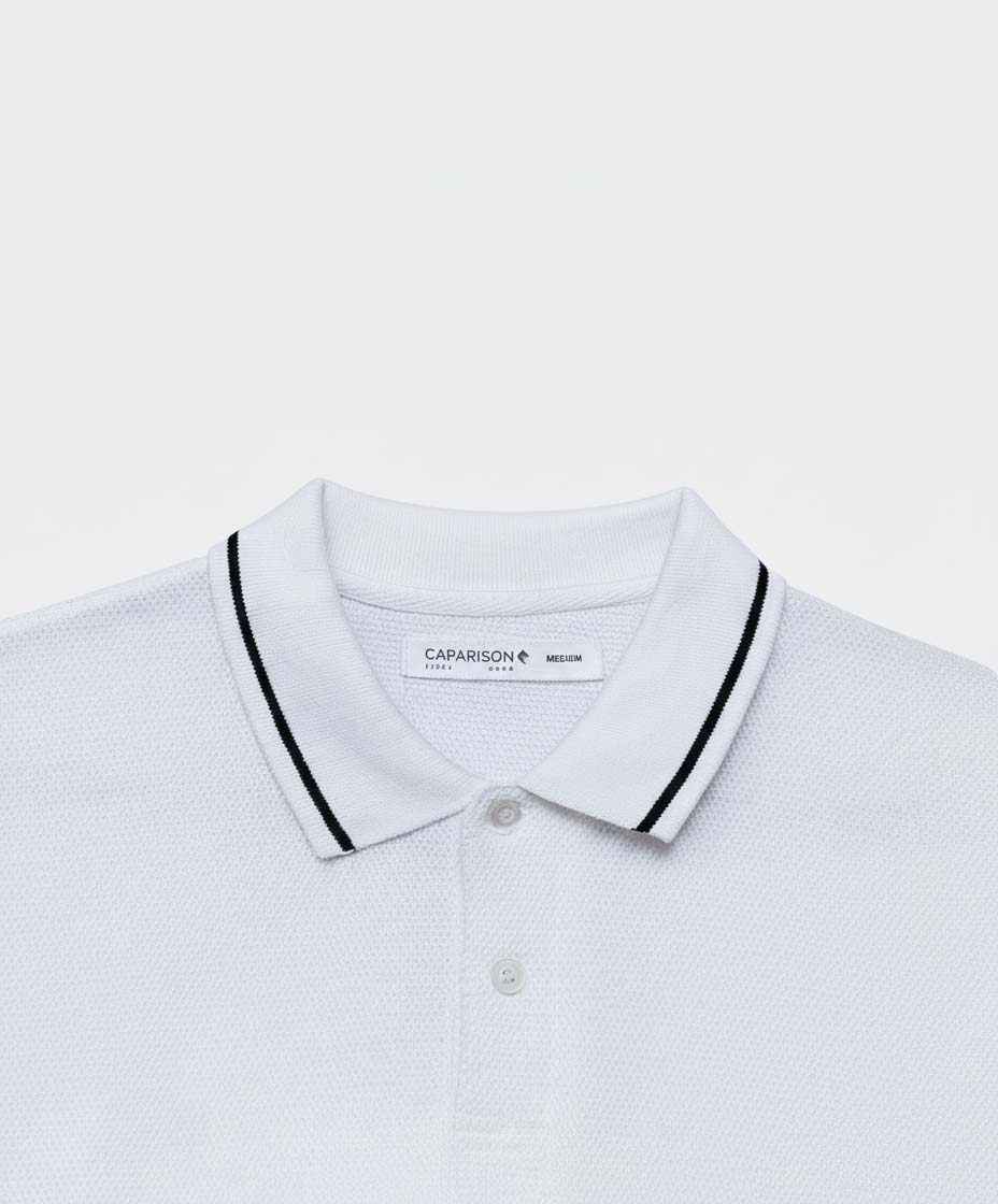 Crisp, classic, and cool  Caparison’s White Tipping Polo Shirt is the modern essential your wardrobe needs. Made from soft, breathable 100% cotton, this shirt features clean contrast tipping on the collar, adding polish to your everyday casual look. Its bright white base and athletic cut make it perfect for layering or solo wear.